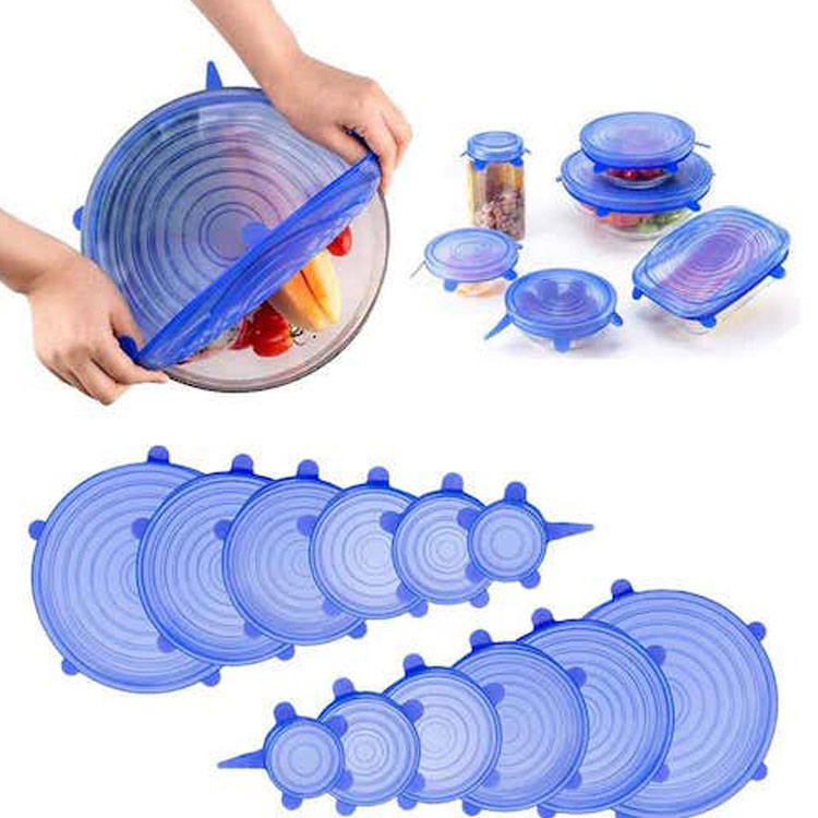 Specification: Material: Silicone Color: Blue Quantity: 6 Pcs Size: 6.5cm/2.6inch; 9.5cm/3.7inch; 11cm/4.3inch; 14cm/5.5inch; 16cm/6.3inch; 20cm/7.9inch 🥫Stackable and Reusable Thicker reusable