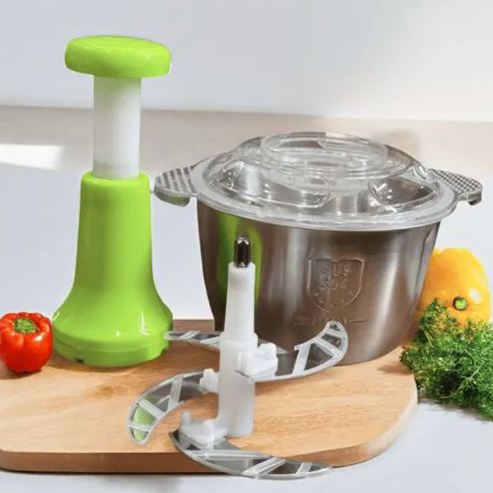 Simplify your kitchen work with this 2-Liter Stainless Steel Manual Chopper, made for fast and easy meal prep. Built from